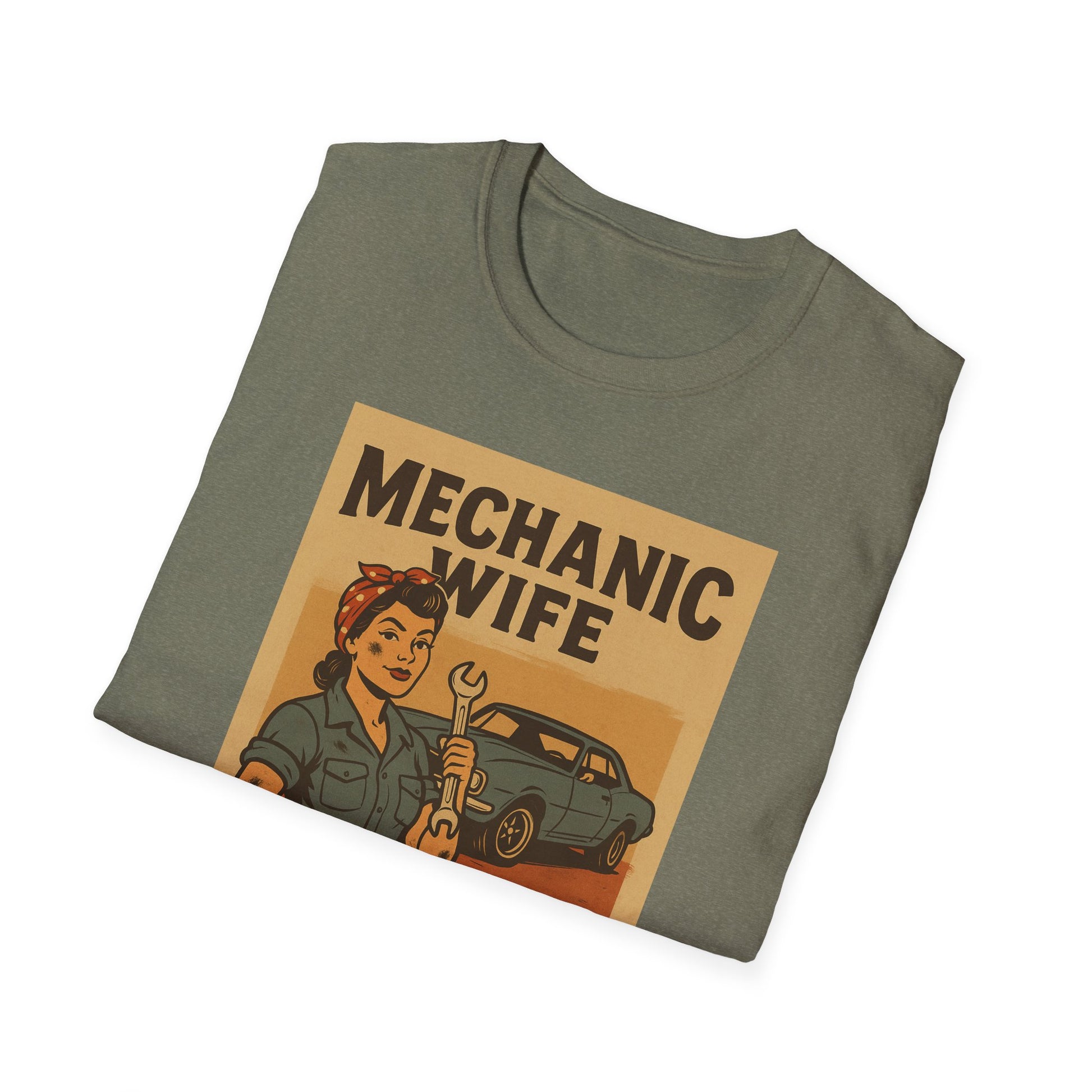 Mechanic Wife T-Shirt – Grease-Stained, Heart-Claimed! (Vintage Retro Style)